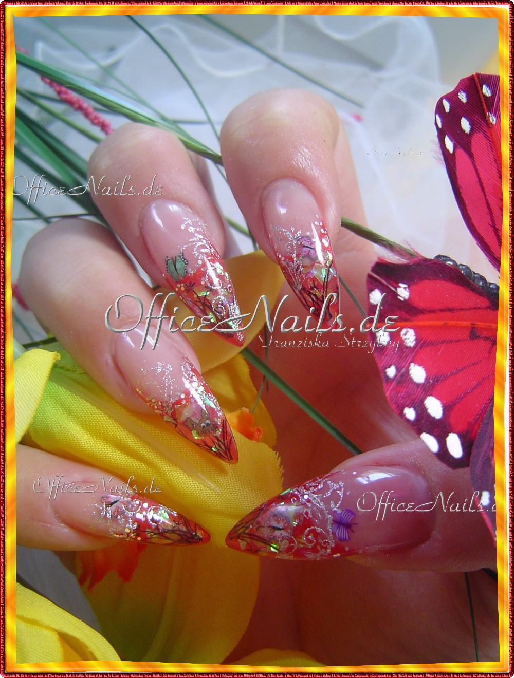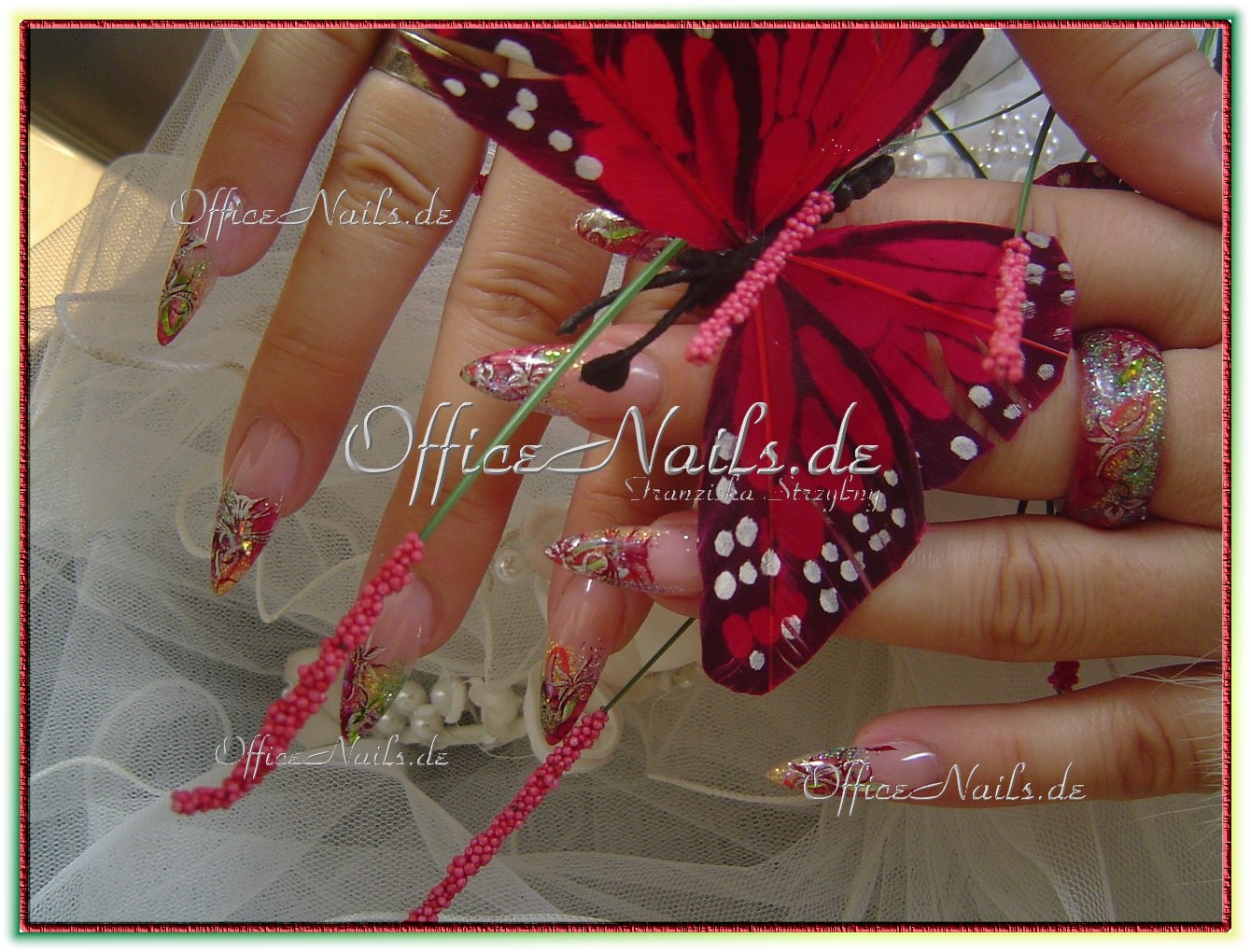 kann Ostern kommen: hier mit Schmetterlingen und auf den Ringfingern sind