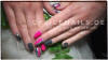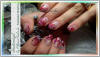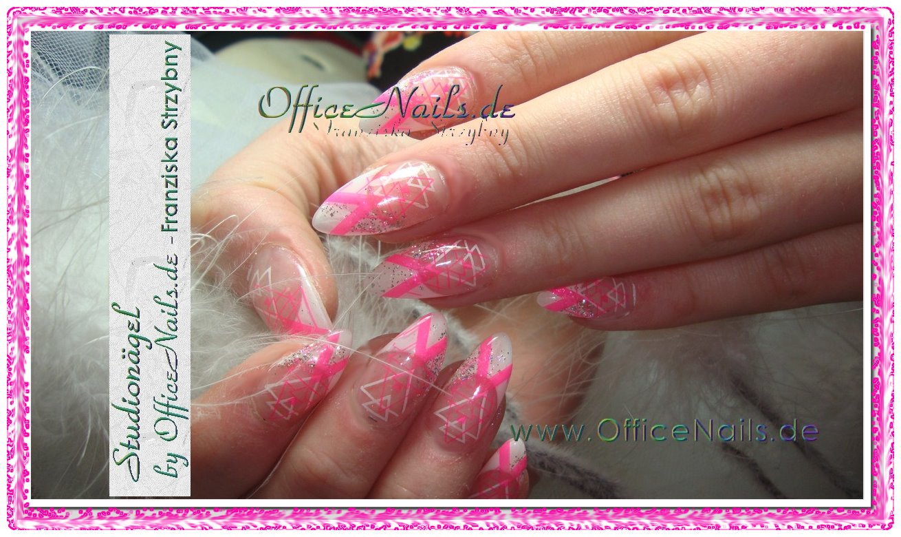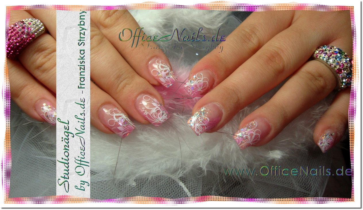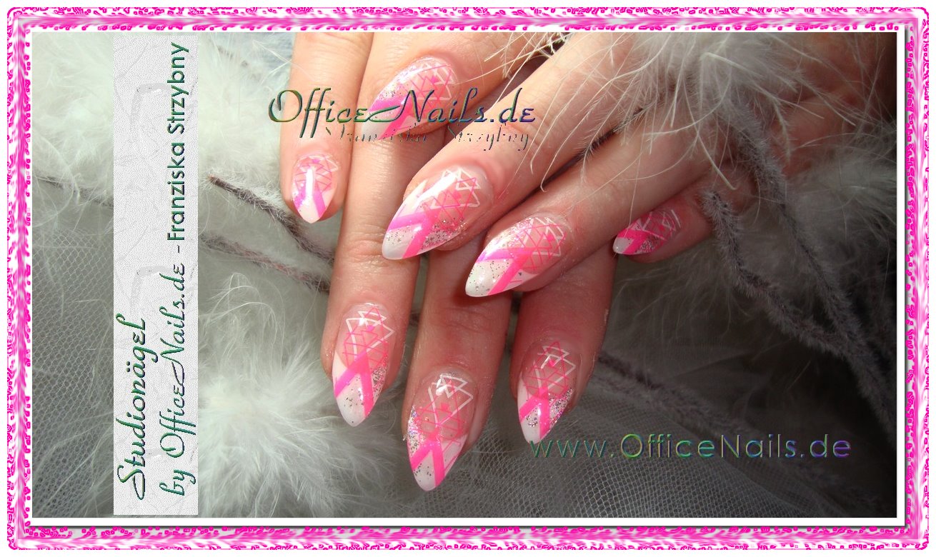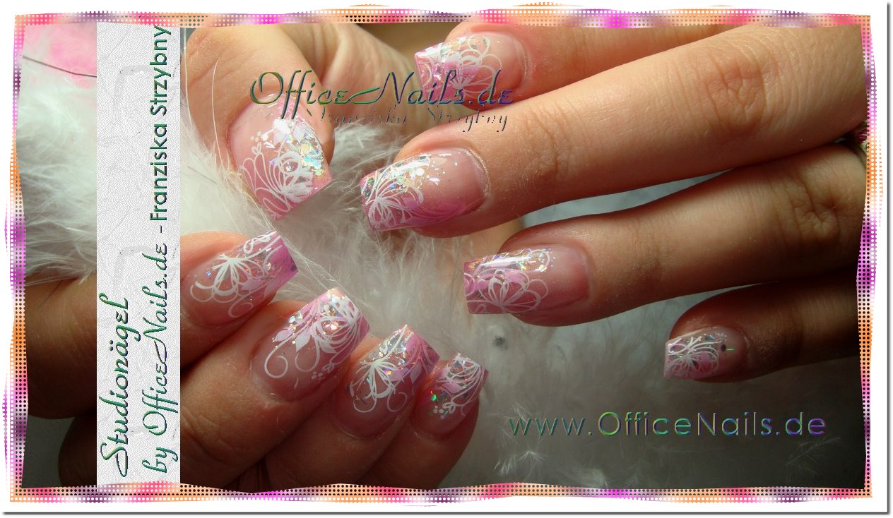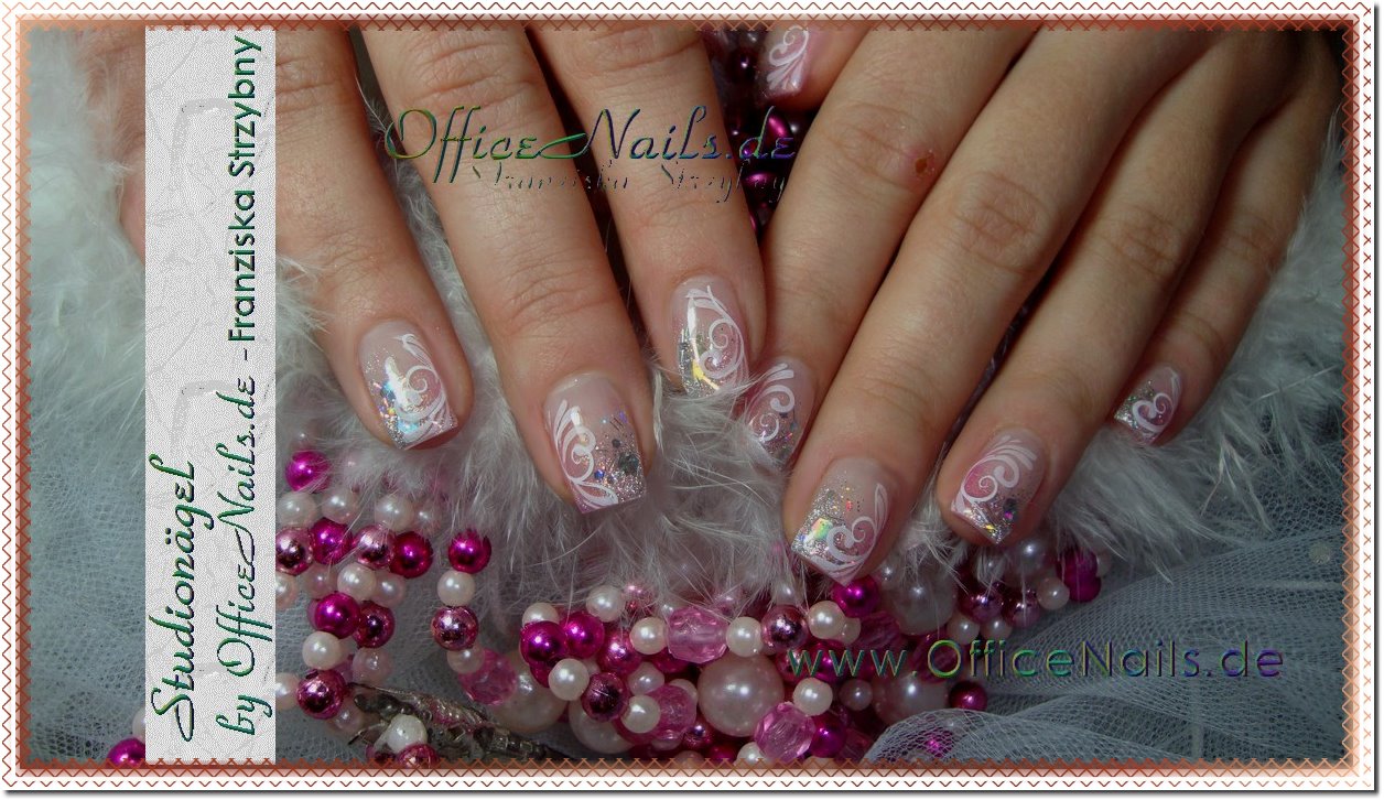 Pinkes French hier mit apricot und Glitter, zarte Ranken oben auf.