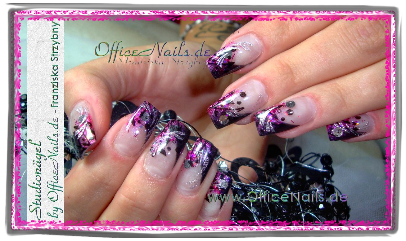 Untergrund hier mit leuchtendem Lila kombiniert. Mit Schnörkel und