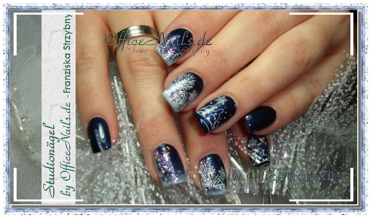 Mitternachtsblau hier in Kombination mit Glitter und leicht verspielten